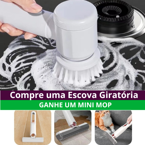 Super Escova Giratória Limpeza 3 em 1 + Brinde Esfregão Mini MOP