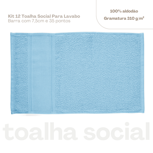 Kit 12 toalhas de lavabo social Azul Clarinho gramatura 310 g/m²