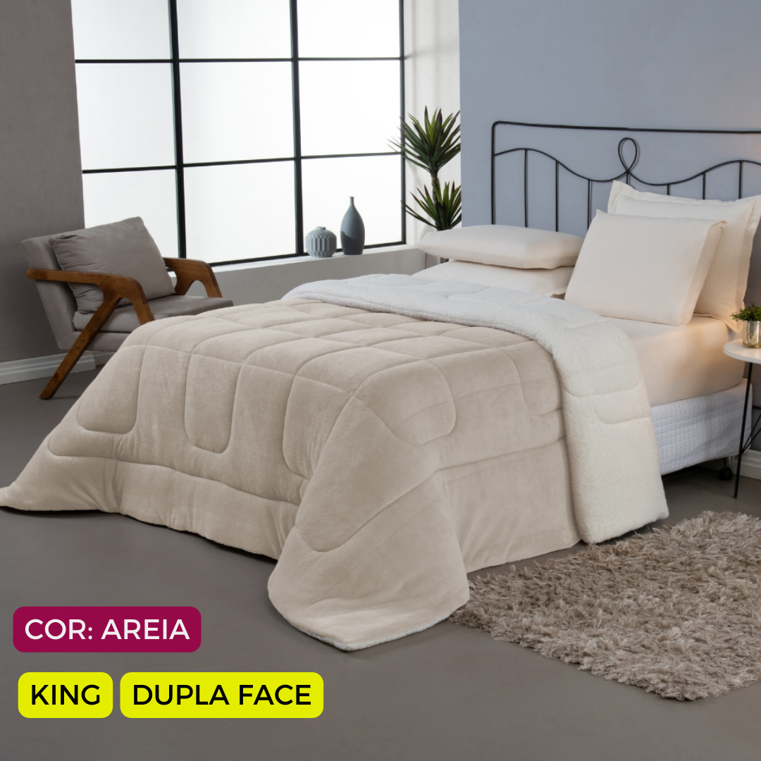 Quando os dias de inverno chegam, um cobertor aconchegante e quentinho é tudo o que o corpo pede. Para aquecer seus momentos de descanso, invista no modelo Soft. Em dupla face, ele possui um lado liso com tecido manta soft e outro em sherpa pele de carneiro, o que concede uma textura agradável em contato com a pele e maior conforto para o seu sono. Essa peça tem alta capacidade de reter calor e pode ser usada até nos dias de frio intenso. Seu acabamento possui um refilado que une as três mantas desse produto e prolonga a vida útil na hora da lavagem