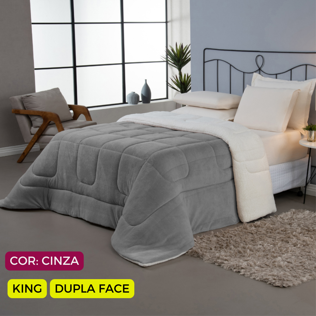 Coberdrom Cobertor Dupla Face 1 Peça King Manta Soft e Sherpa de Carneiro