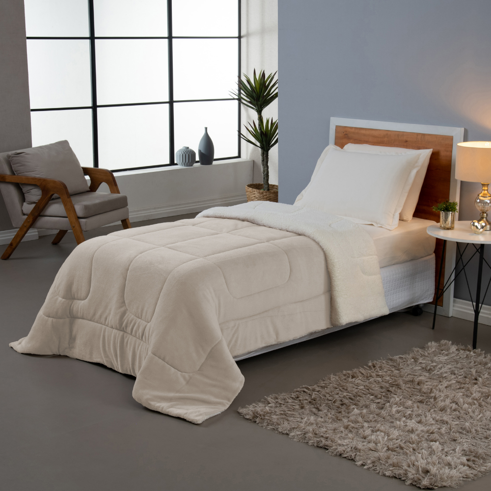 Quando os dias de inverno chegam, um cobertor aconchegante e quentinho é tudo o que o corpo pede. Para aquecer seus momentos de descanso, invista no modelo Soft. Em dupla face, ele possui um lado liso com tecido manta soft e outro em sherpa pele de carneiro, o que concede uma textura agradável em contato com a pele e maior conforto para o seu sono. Essa peça tem alta capacidade de reter calor e pode ser usada até nos dias de frio intenso. Seu acabamento possui um refilado que une as três mantas desse produto e prolonga a vida útil na hora da lavagem