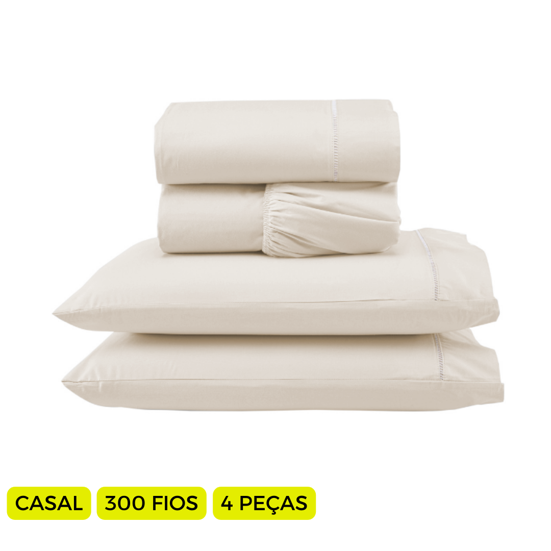 Jogo de Lençol Versatile Ponto Palito Completo 4 Peças Casal 100% Poliéster Micropercal 300 Fios.