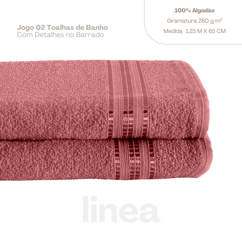 2: Toalhas de banho de 1,25m X 65cm