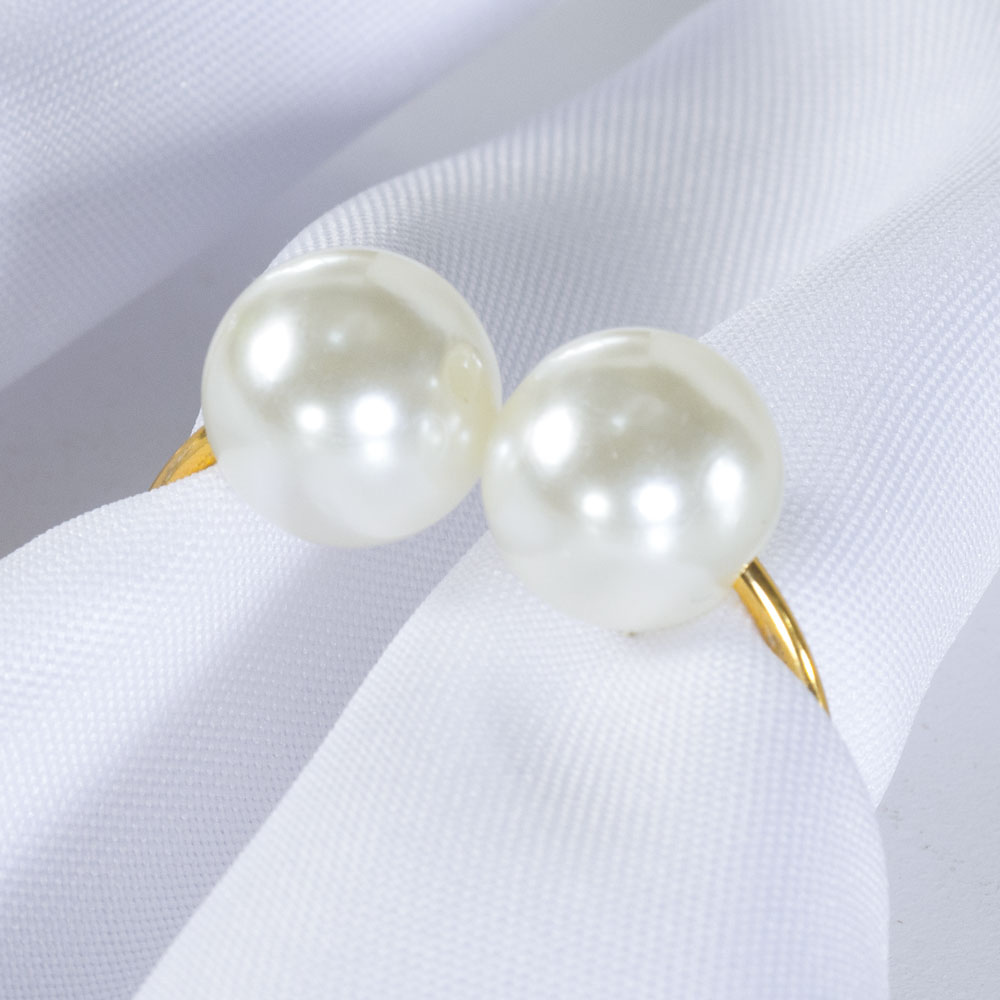 Kit 2 Anéis Para Guardanapos Pérola 4cm x 3cm Argola Metal.