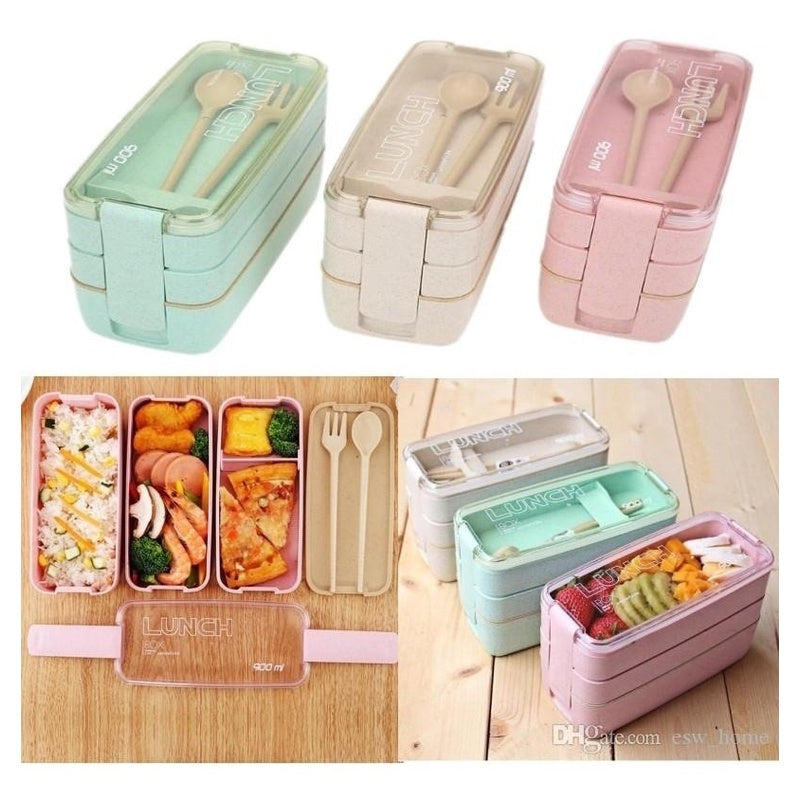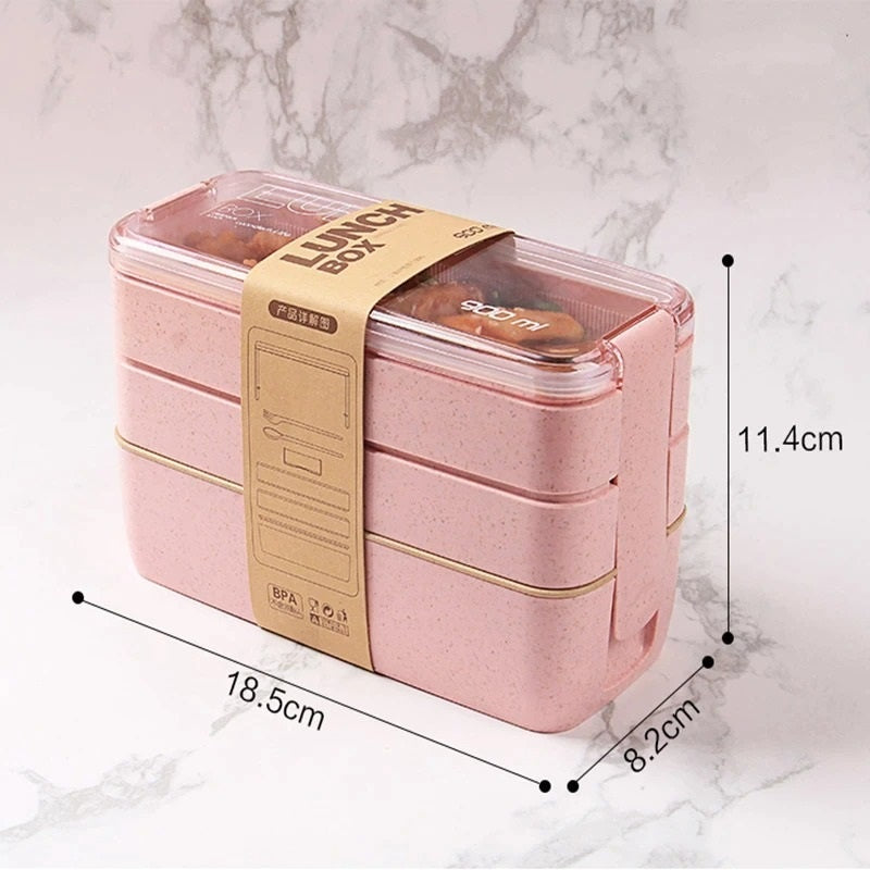 LUNCHBOX com 3 andares - 900ml + Garfo Colher de BRINDE