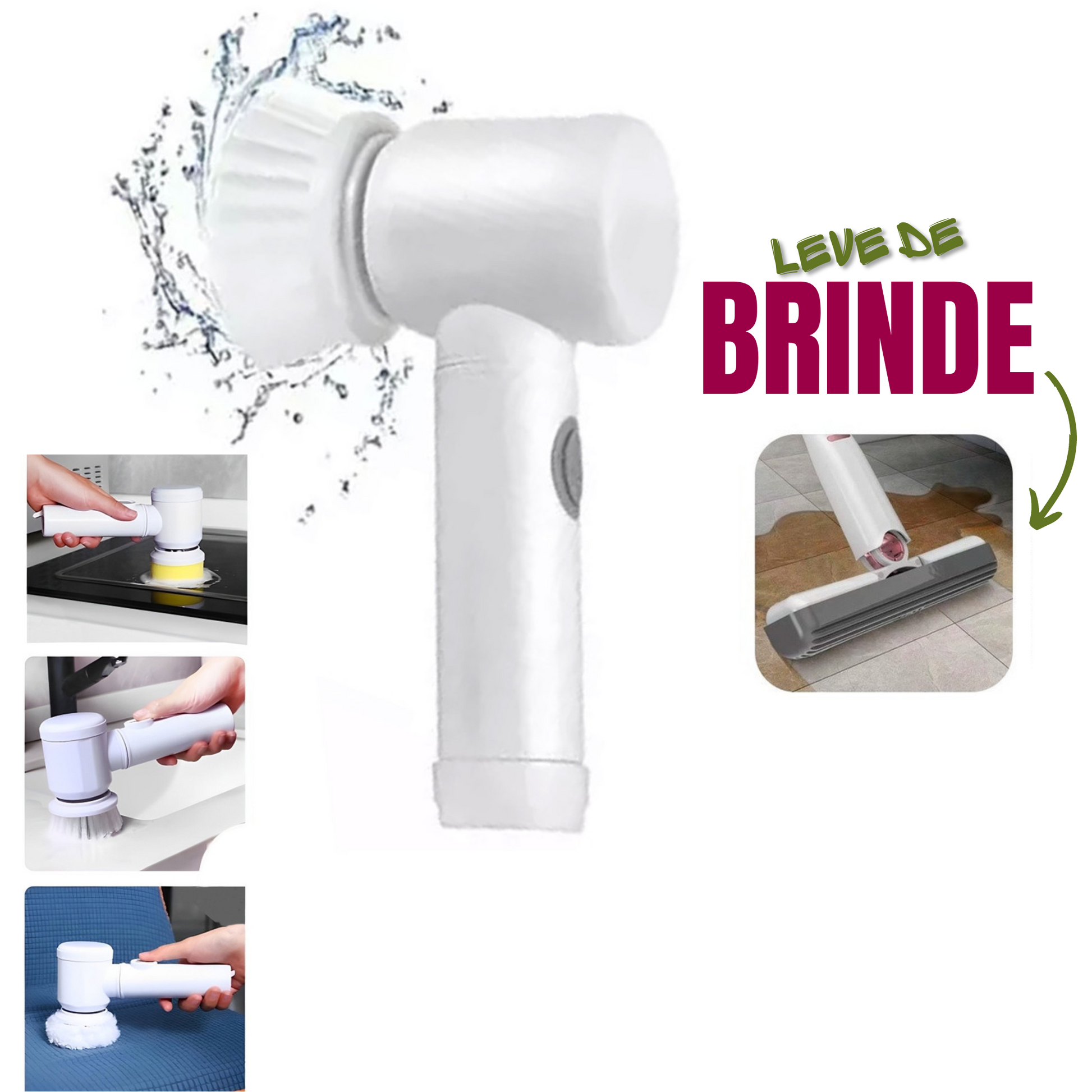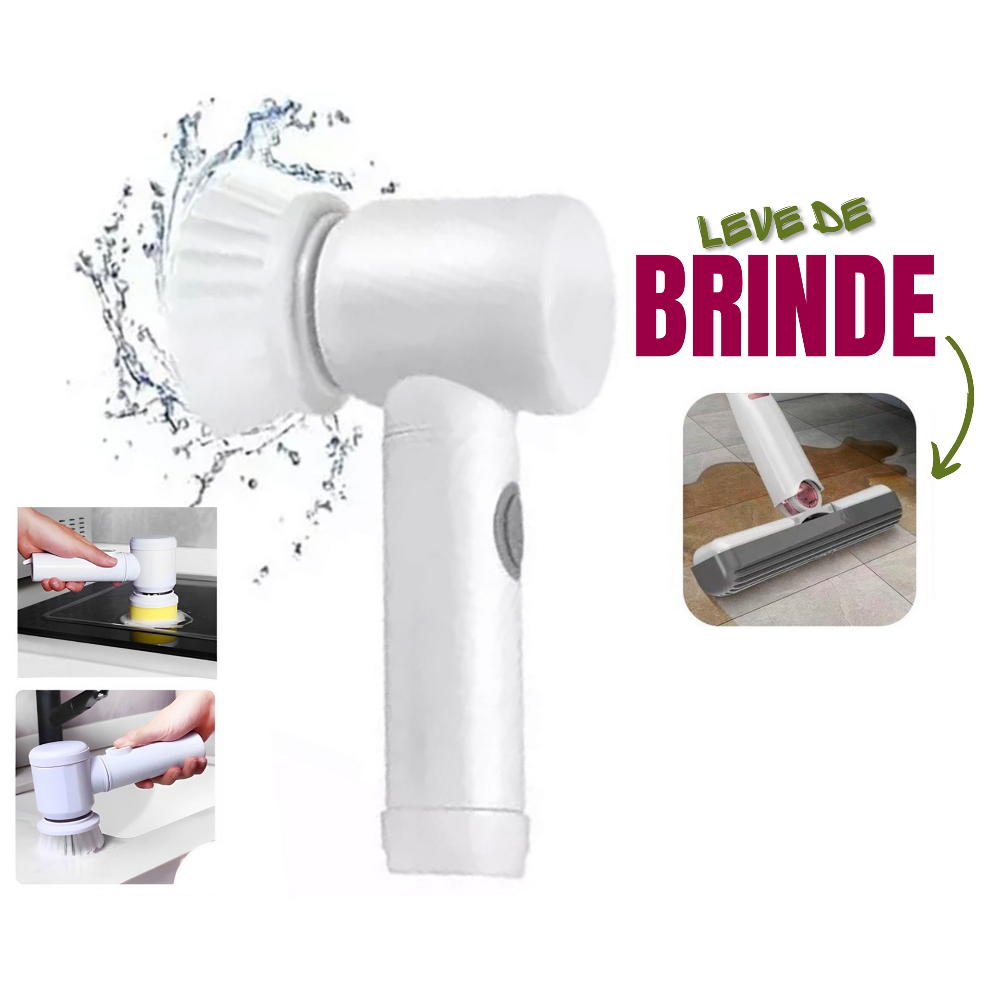 Super Escova Giratória Limpeza 3 em 1 + Brinde Esfregão Mini MOP