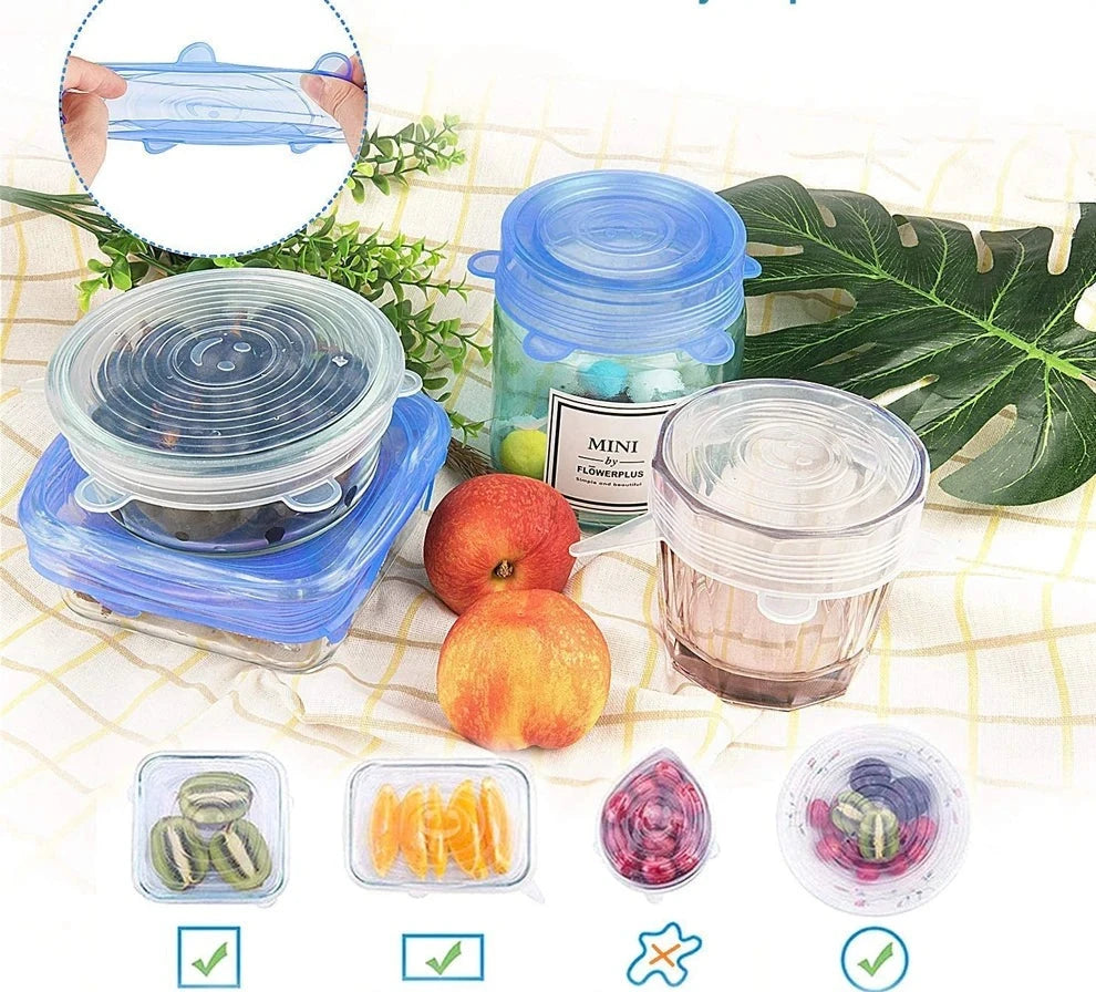 Tampas de Silicone Multiuso Reutilizável - KIT com 6 unidades